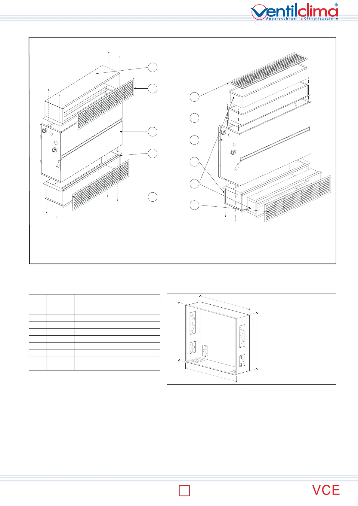 The galvanized sheet metal box is used to ease the installation of the recessed fan coil version X7 (frontal air supply) inside the niche.