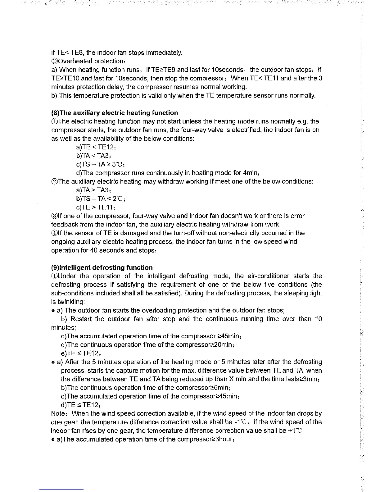 Venting HP18RA - Protection & Aux Functions (9-12 k BTU); Auxiliary Electric Heating; Intelligent Defrosting; Sleeping Control Function