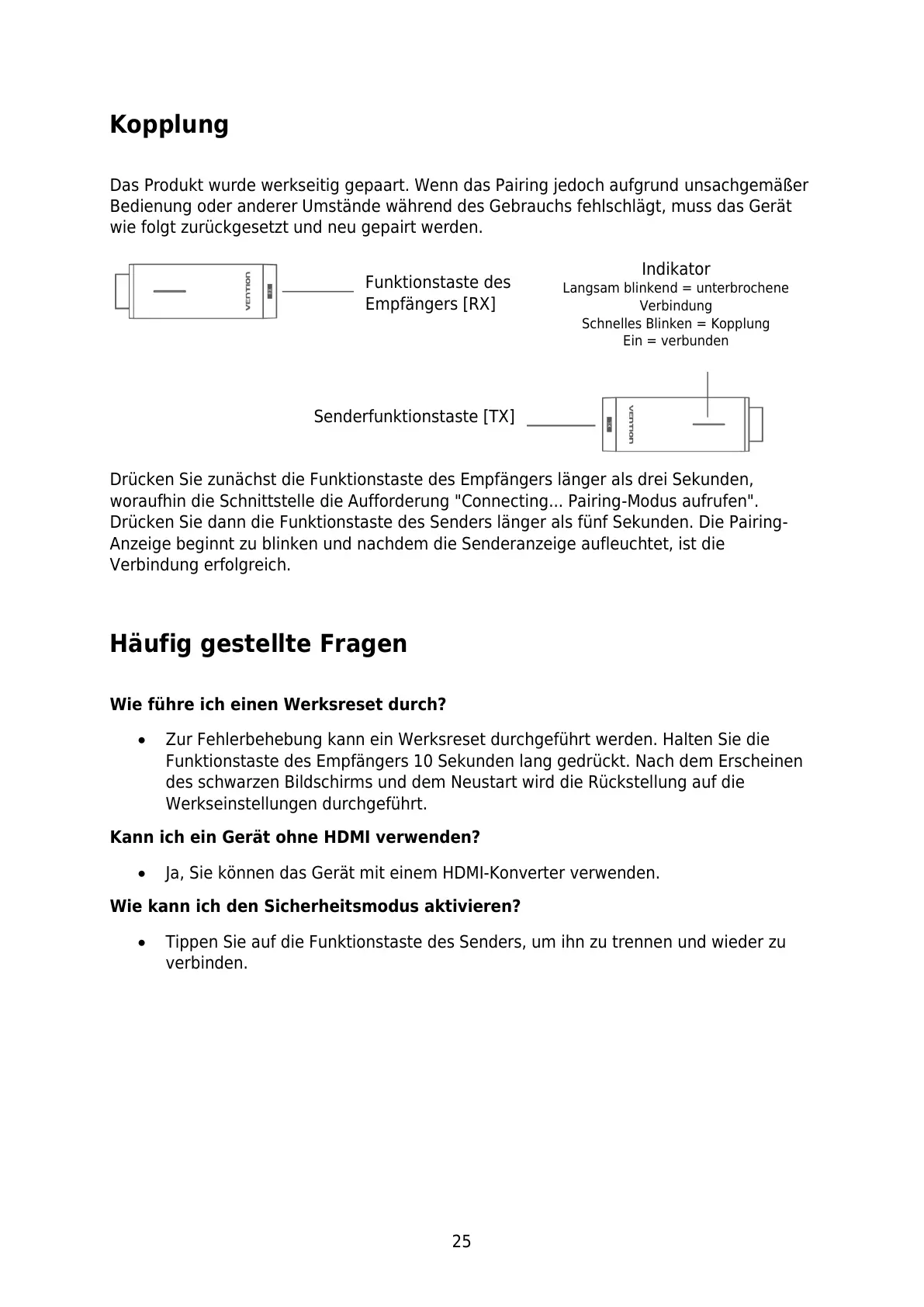 Funktionstaste des Empfängers 10 Sekunden lang gedrückt. Nach dem Erscheinen