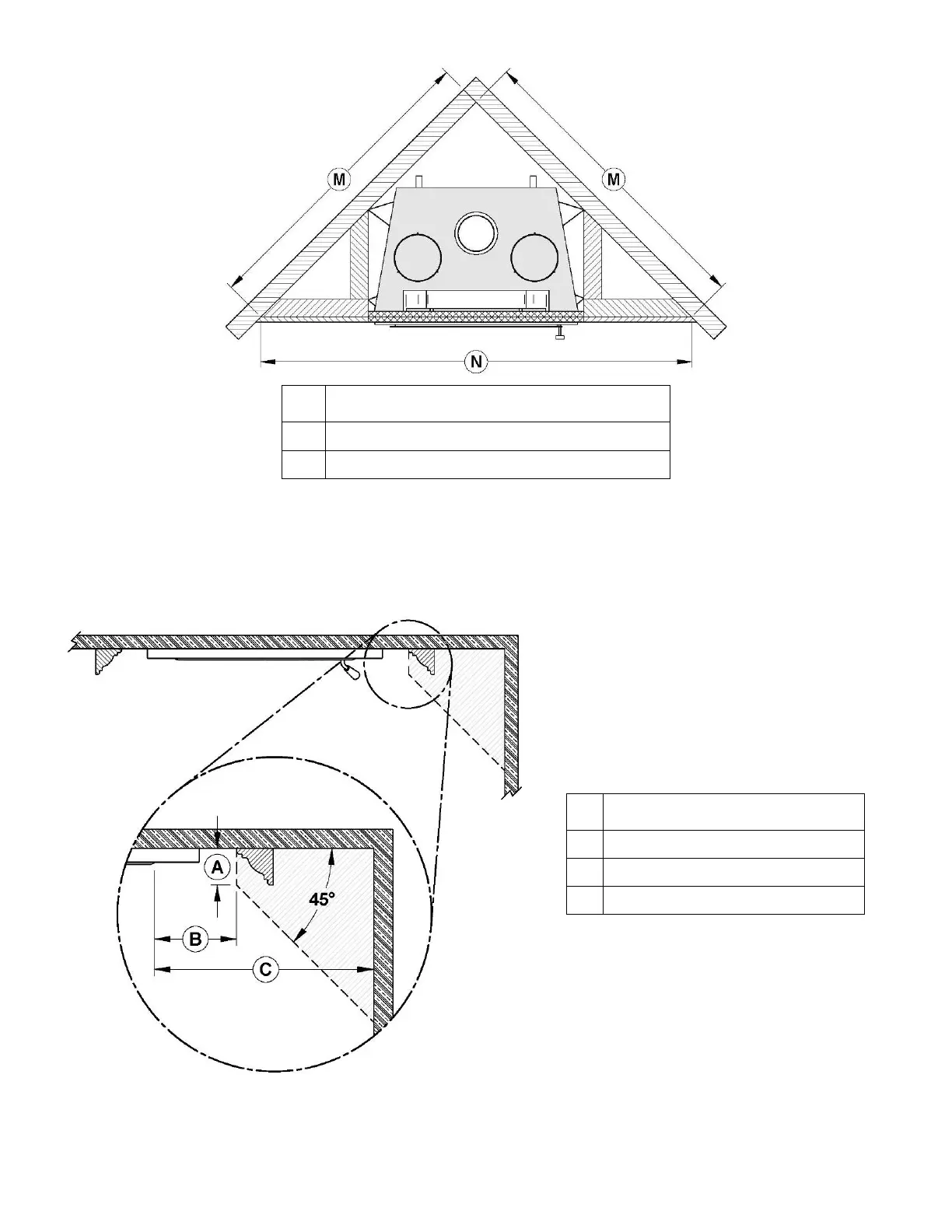 **Values M and N are minimum measurements. They may need to be increased to alloy installation of a