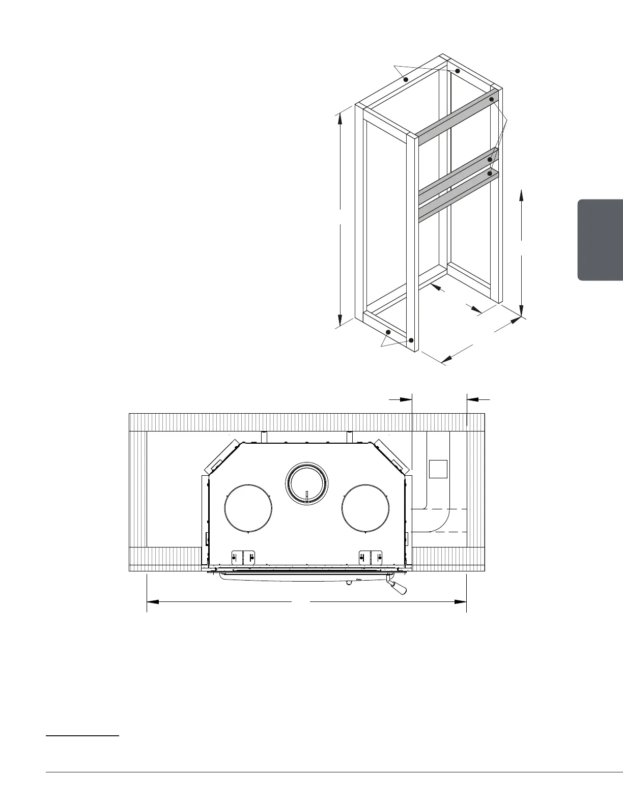 B : Distance between framing and side fireplace standoff 12" (305 mm)