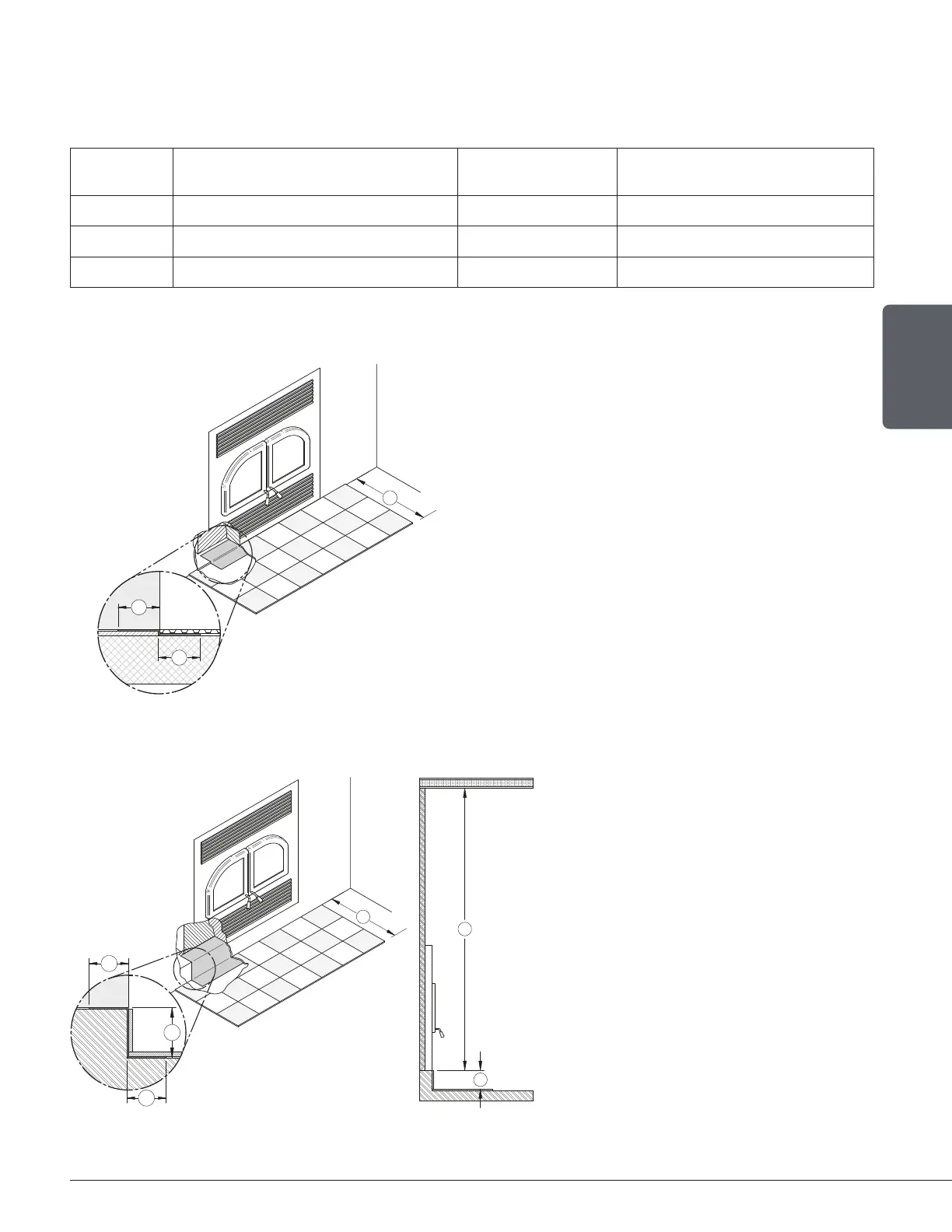 This fireplace can be installed directly on the floor or on a raised base, combustible or not. The