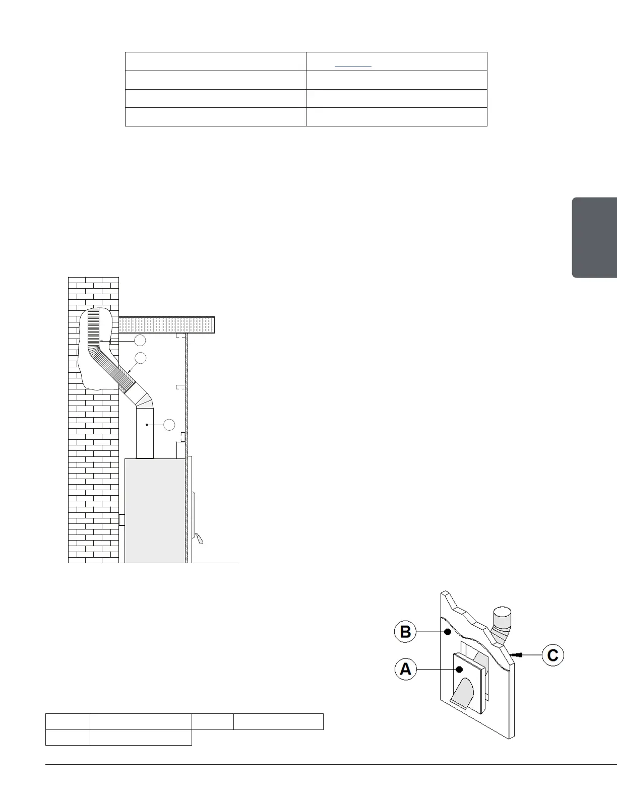 3. Lower the liner (C) into the chimney to the level of the hole.