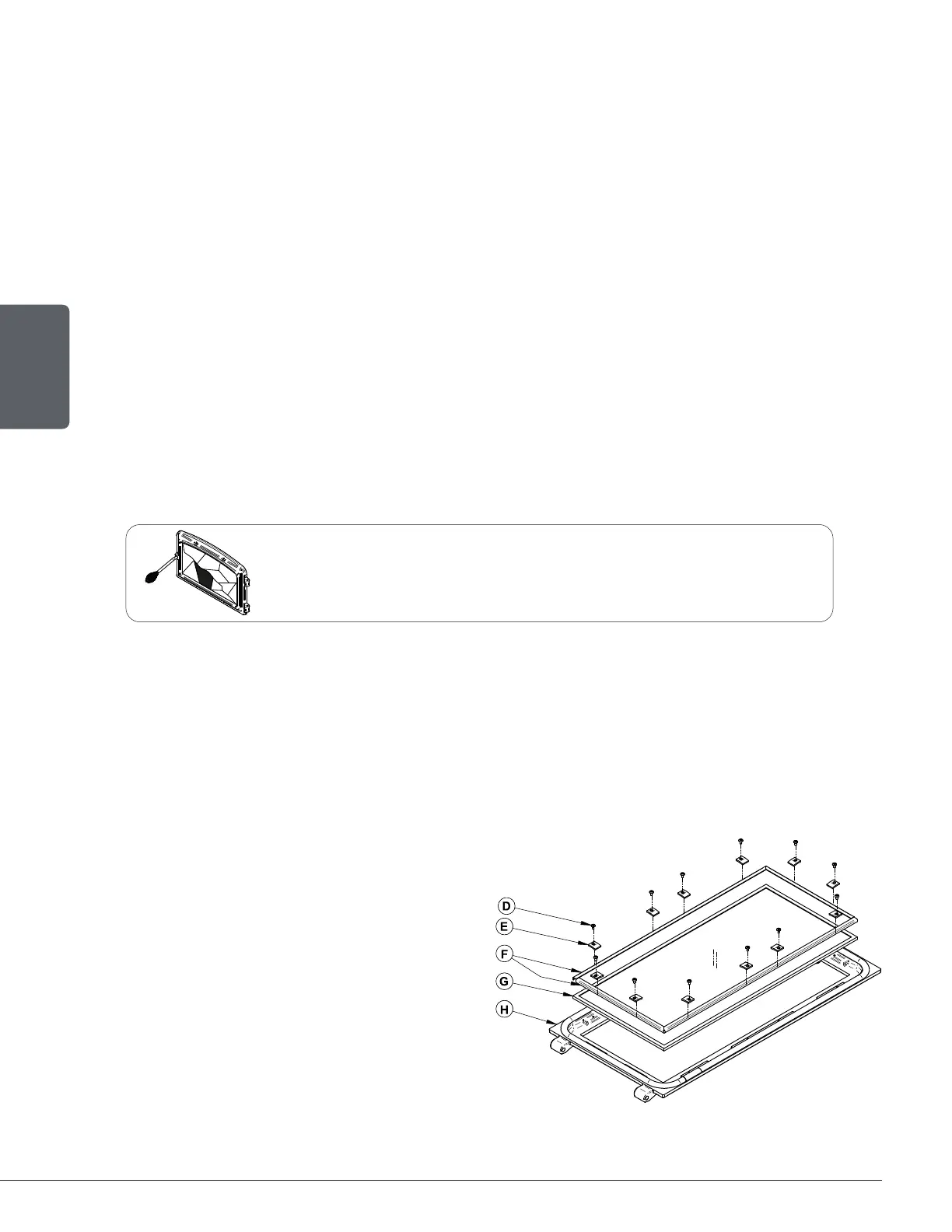 1. Remove the door (H) and place it face-down