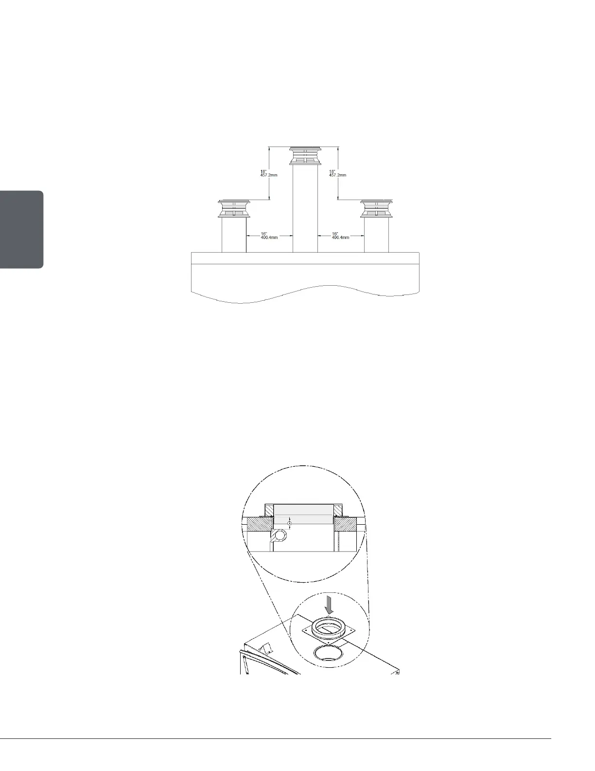 18" (460 mm) vertically. This separation is to prevent smoke migrating from one chimney to