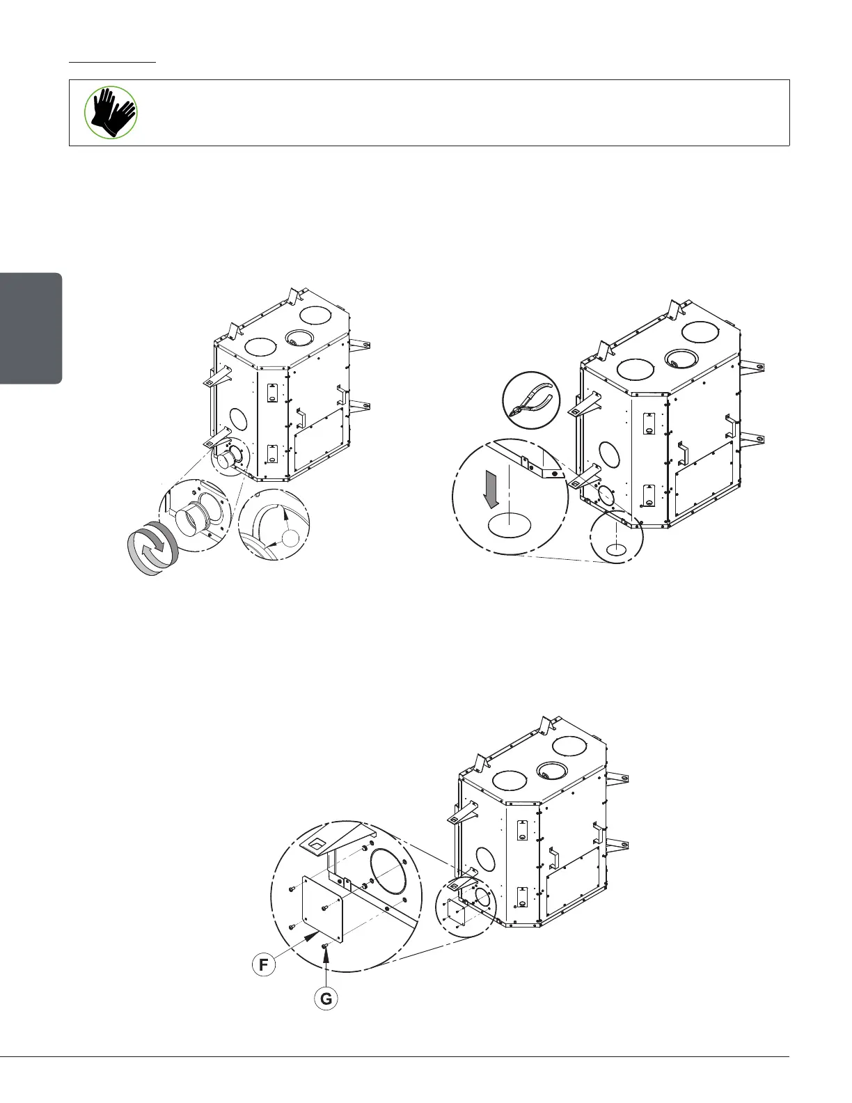 3. If the air inlet installation is below the appliance, install the plate (F) with the supplied screw (G)
