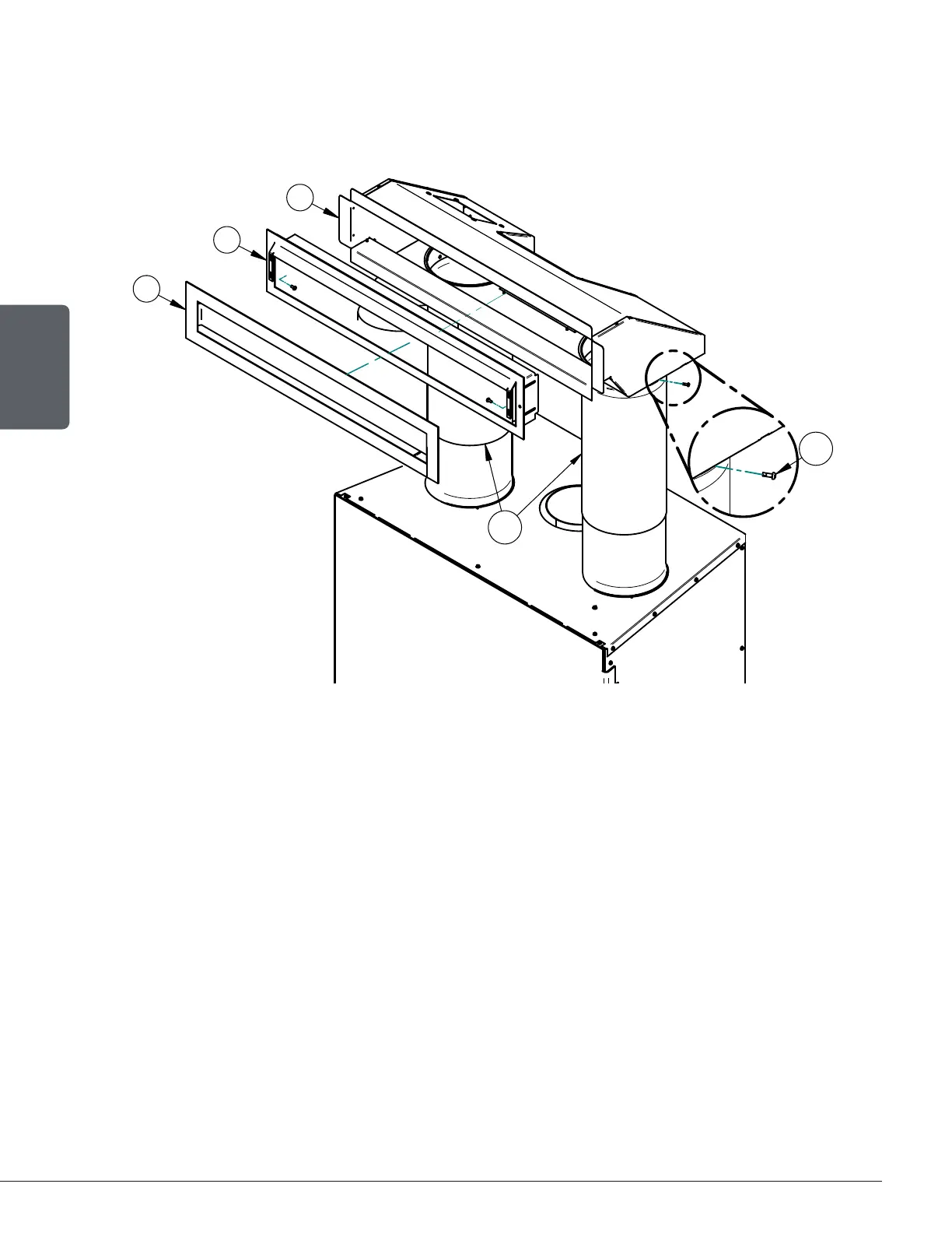 C) Secure the telescoping sections (D) to the heat distribution box (C) with self-tapping screws