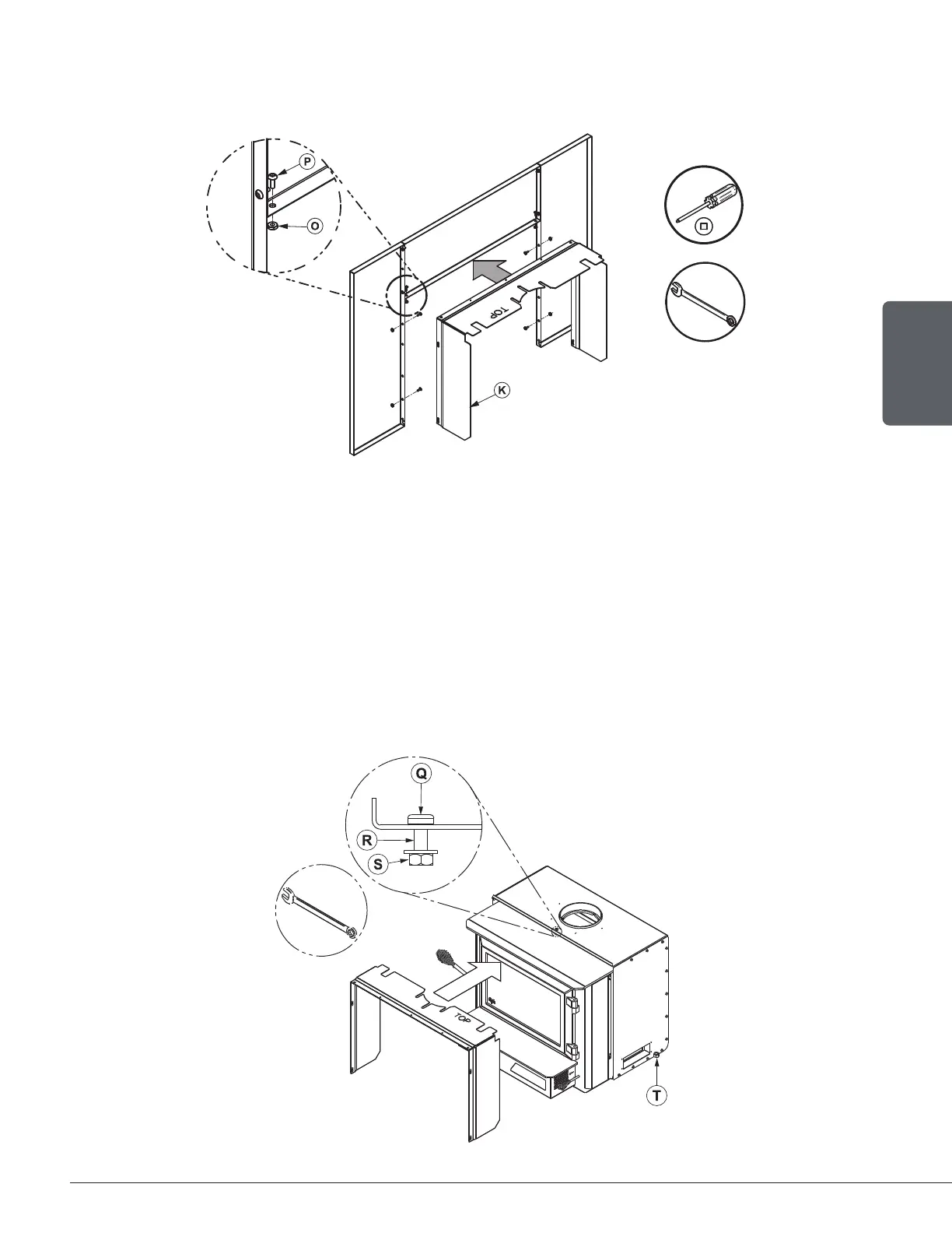 3. Align the holes of the faceplate extension (K) with the holes in the faceplate panels and