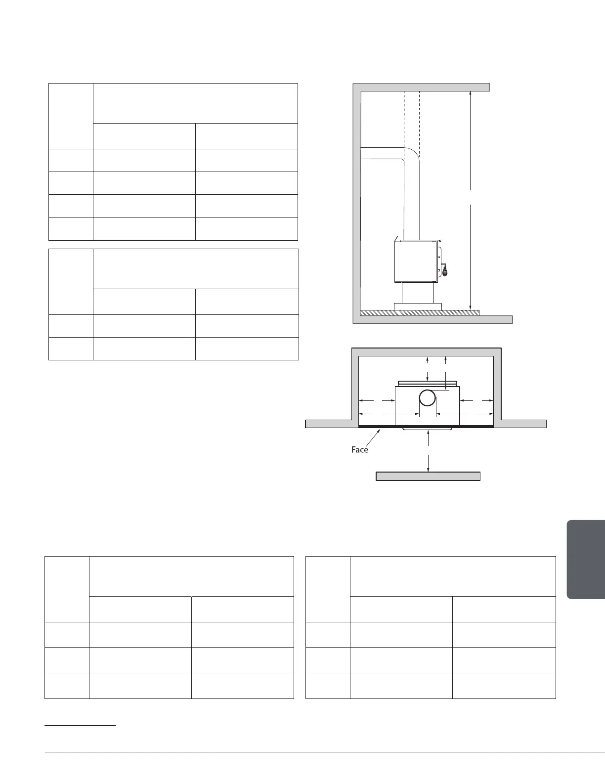 The pipe distances listed in this table refer to the distances obtained when the stove is installed in accordance with the appliance clearances