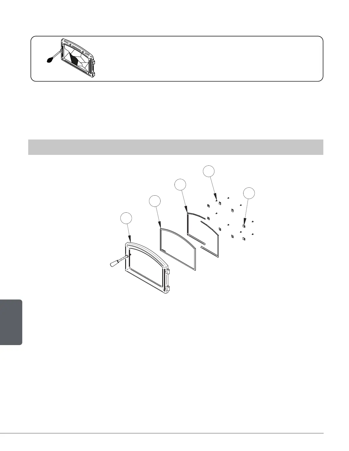 3. Remove the glass (D). If it is damaged install a new one in place. The replacement glass must