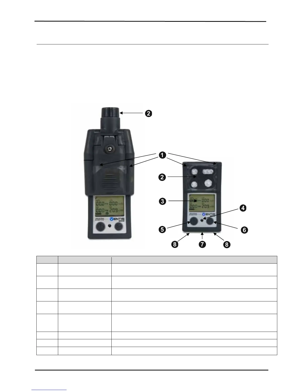 case. Normal instrument orientation for measuring gas concentration is hand held with sensors and display facing the