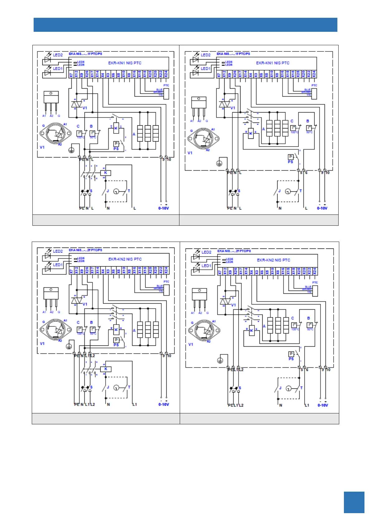Fig. 77. Electrical wiring diagrams of 2-phase 400V heater EKA NIS…--2f PTC/PS