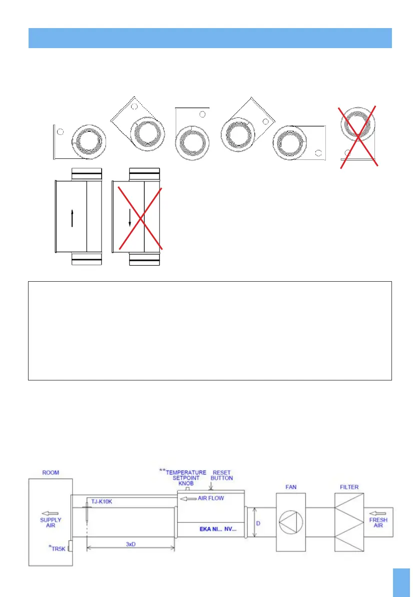 Electrical duct heaters EKA can be installed horizontally in any posion except electrical connecon box
