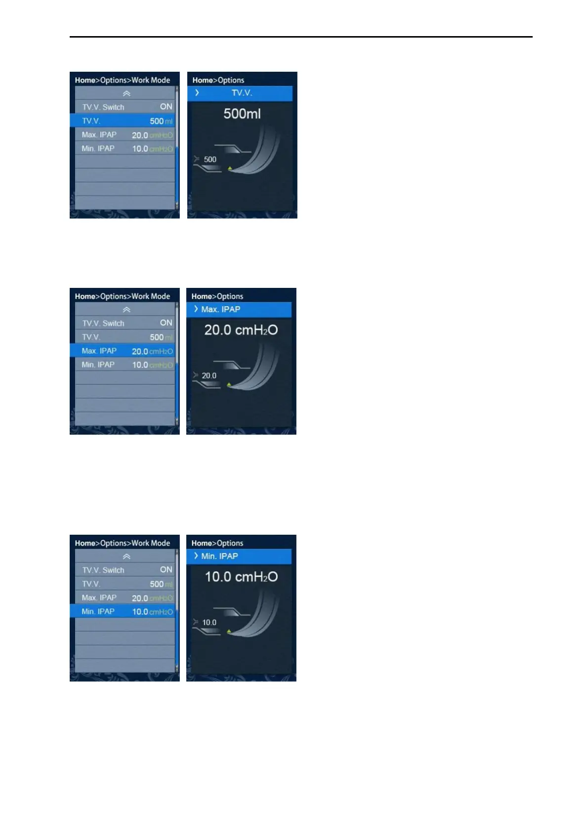 VentMed DS-6 - Pressure and Volume Adjustments; Max. IPAP Adjustment; Min. IPAP Adjustment