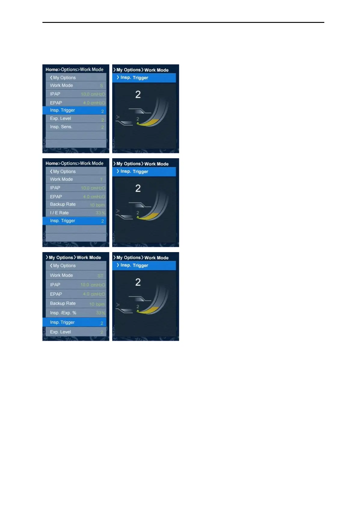 VentMed DS-8 - Trigger and Level Adjustments; Inspirate Trigger Settings; Expirate Level Settings