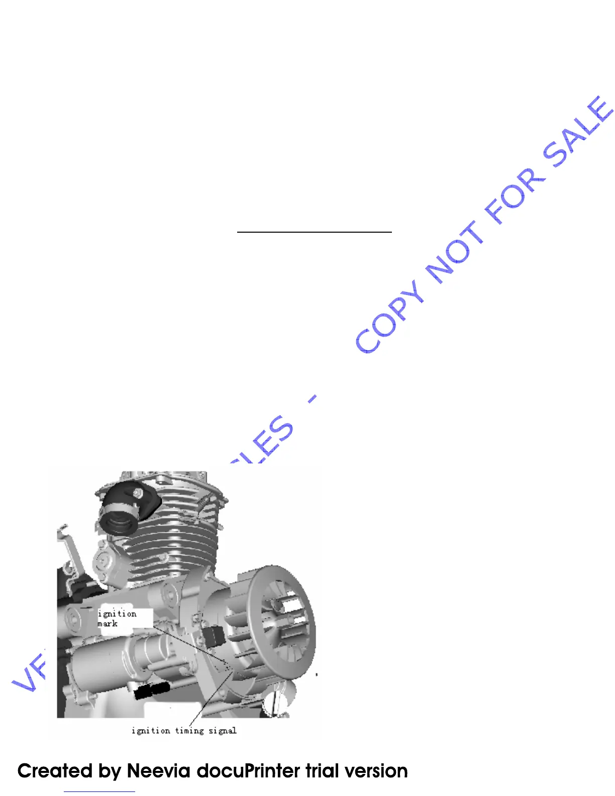 3. Start the engine and aim the timing light at ignition mark on the magneto fly wheel (As shown in figure).