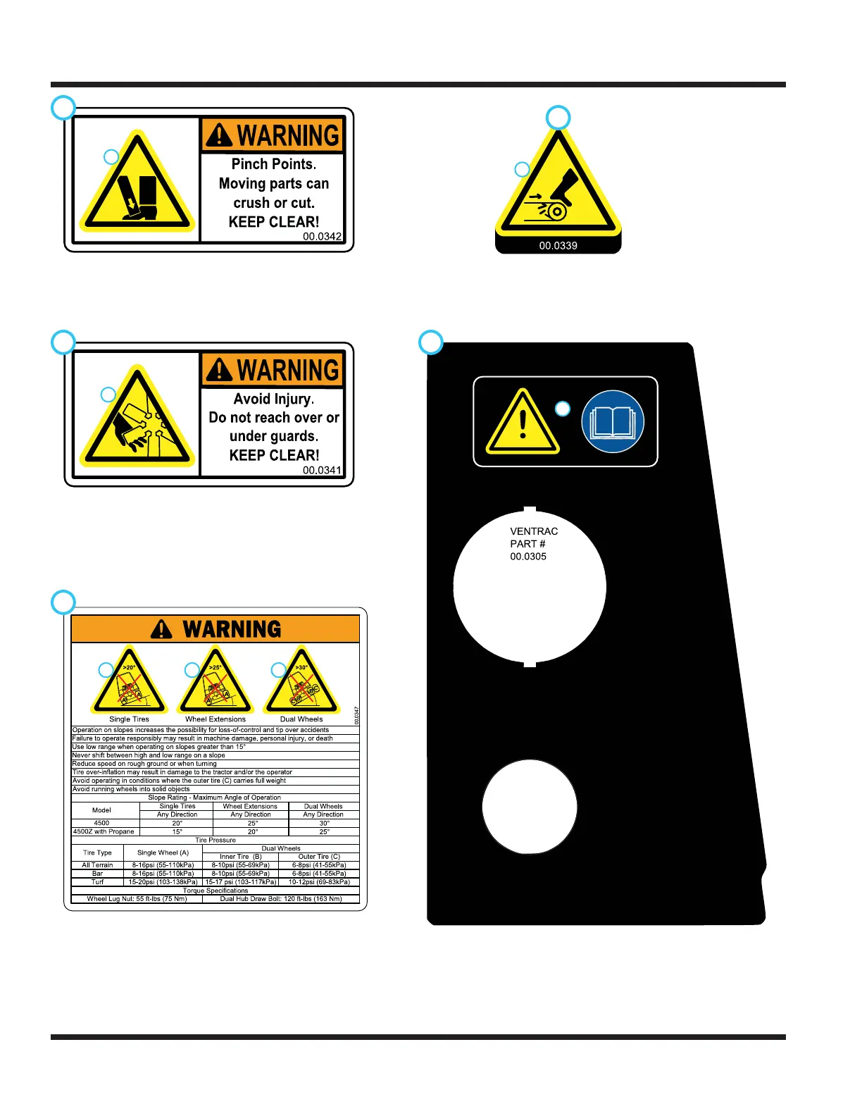 3. WARNING: 30° maximum slope rating when equipped