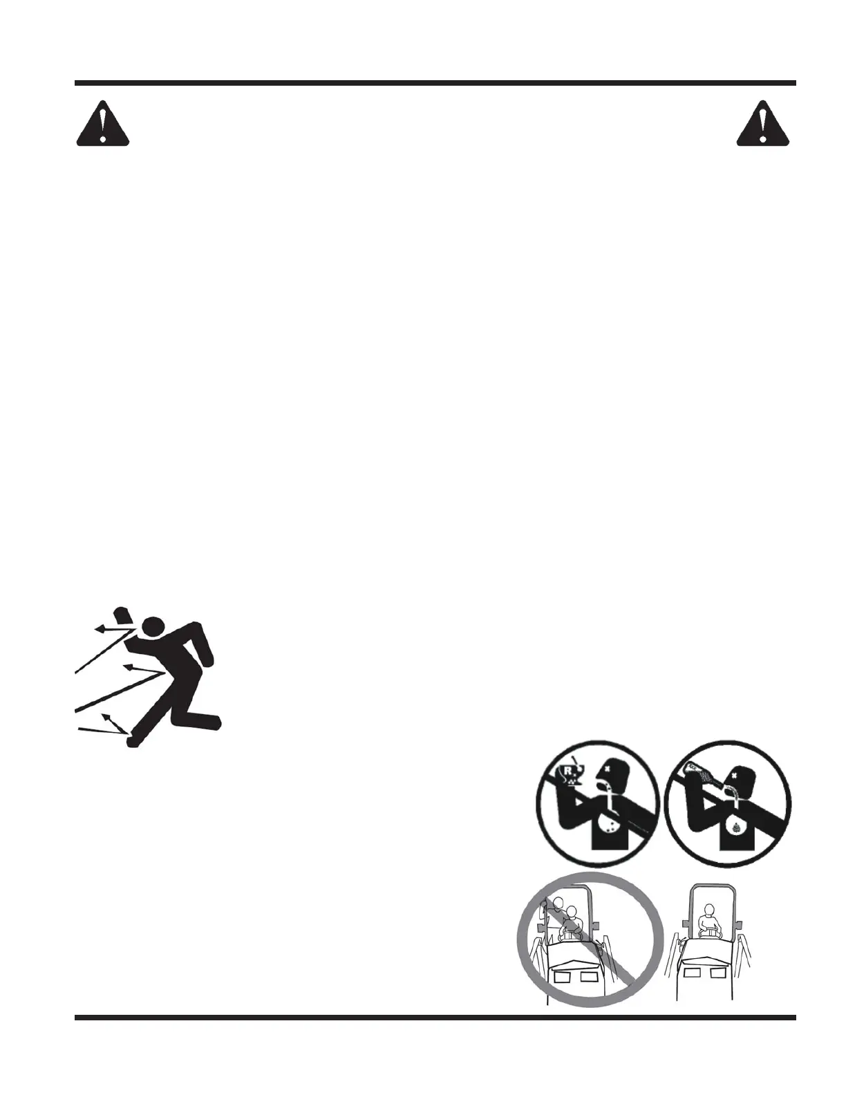 • Never allow riders on any attachment or accessory.