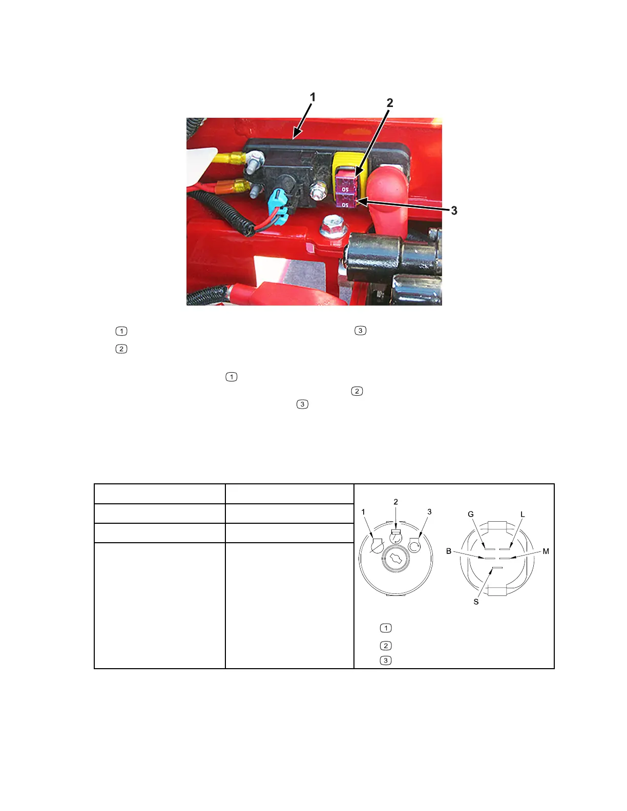 • OFF (STOP) position, all 12 volt power going through the key switch is off.