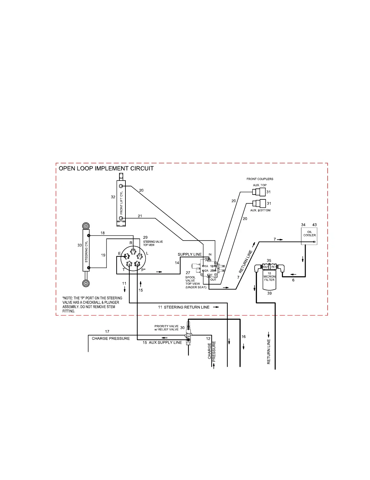 port, to the steering cylinder. Lift and auxiliary input directs fluid flow from P port to E