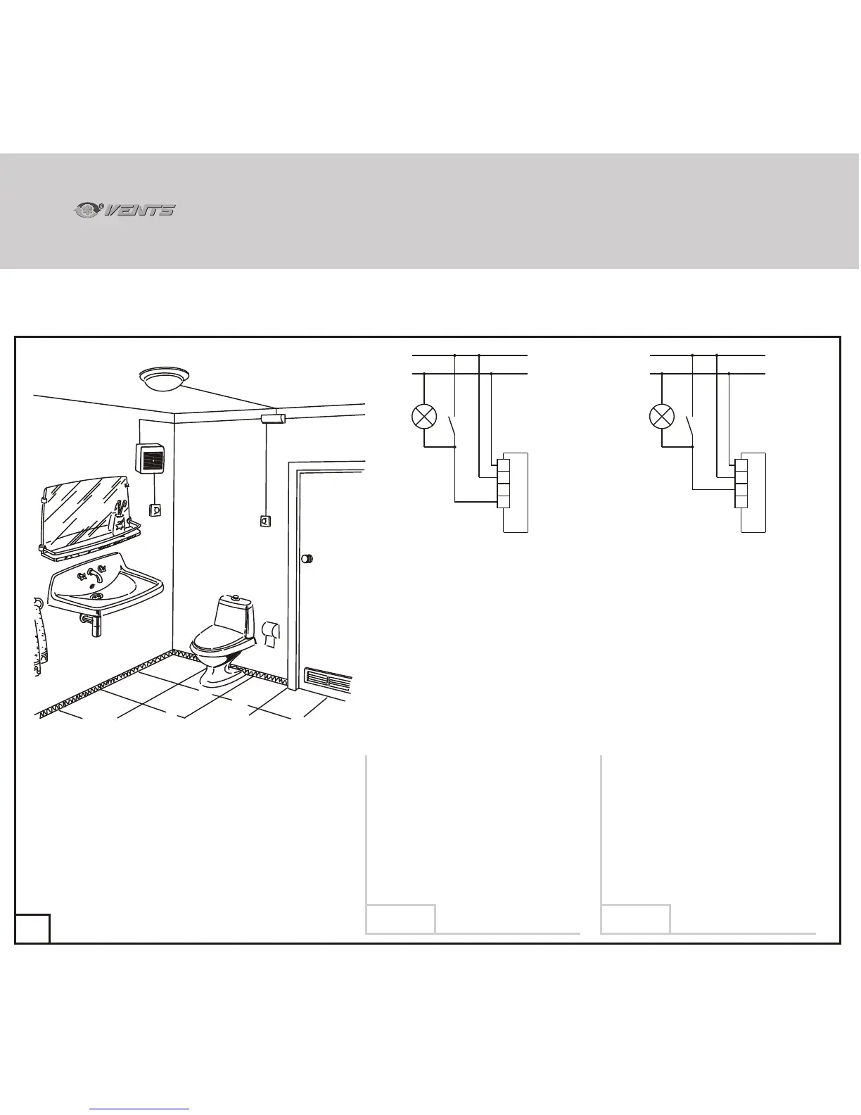 Sample schematic of basic two-speed fan model connection (modifications A, B and D) with a humidity sensor (H).