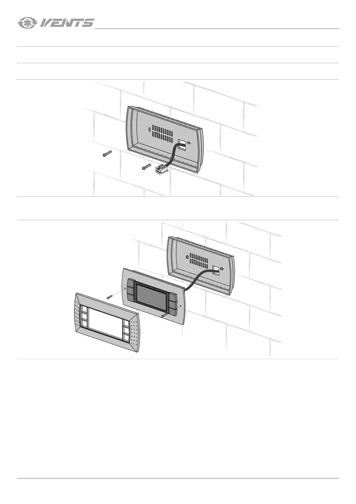 Fix the front part of the control panel to the rear part of the casing with the countersunk screws supplied as shown in the figure below