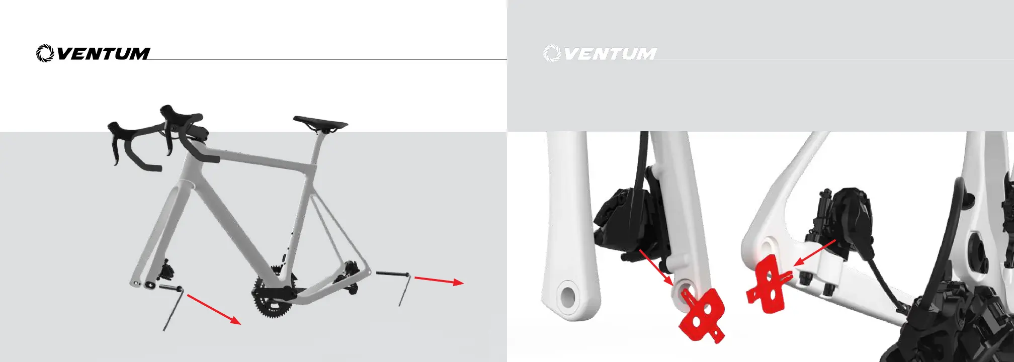 Unscrew the thru axles from the frame and fork using a 6mm hex tool Remove the spacers from the brake calipers