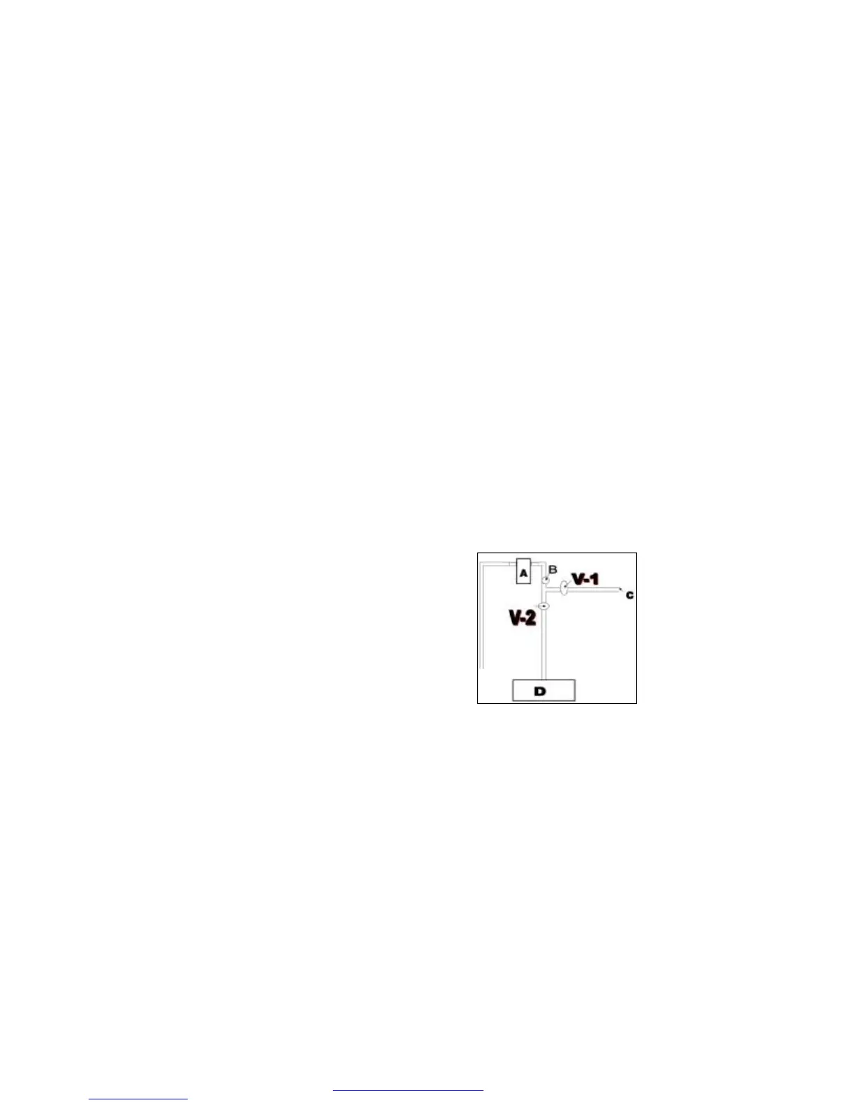 Open faucets, close V-1 valve, V-2 valve needs to be open.