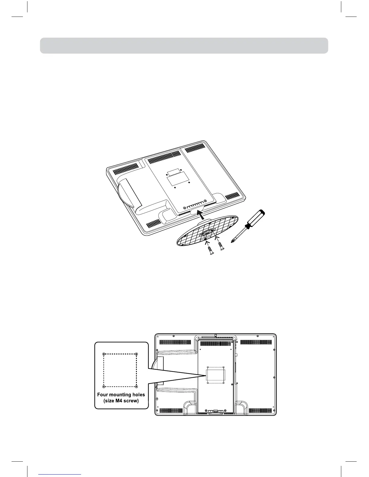 Screws must not project more than 8mm into the TV or damage may occur. For secure fixing make