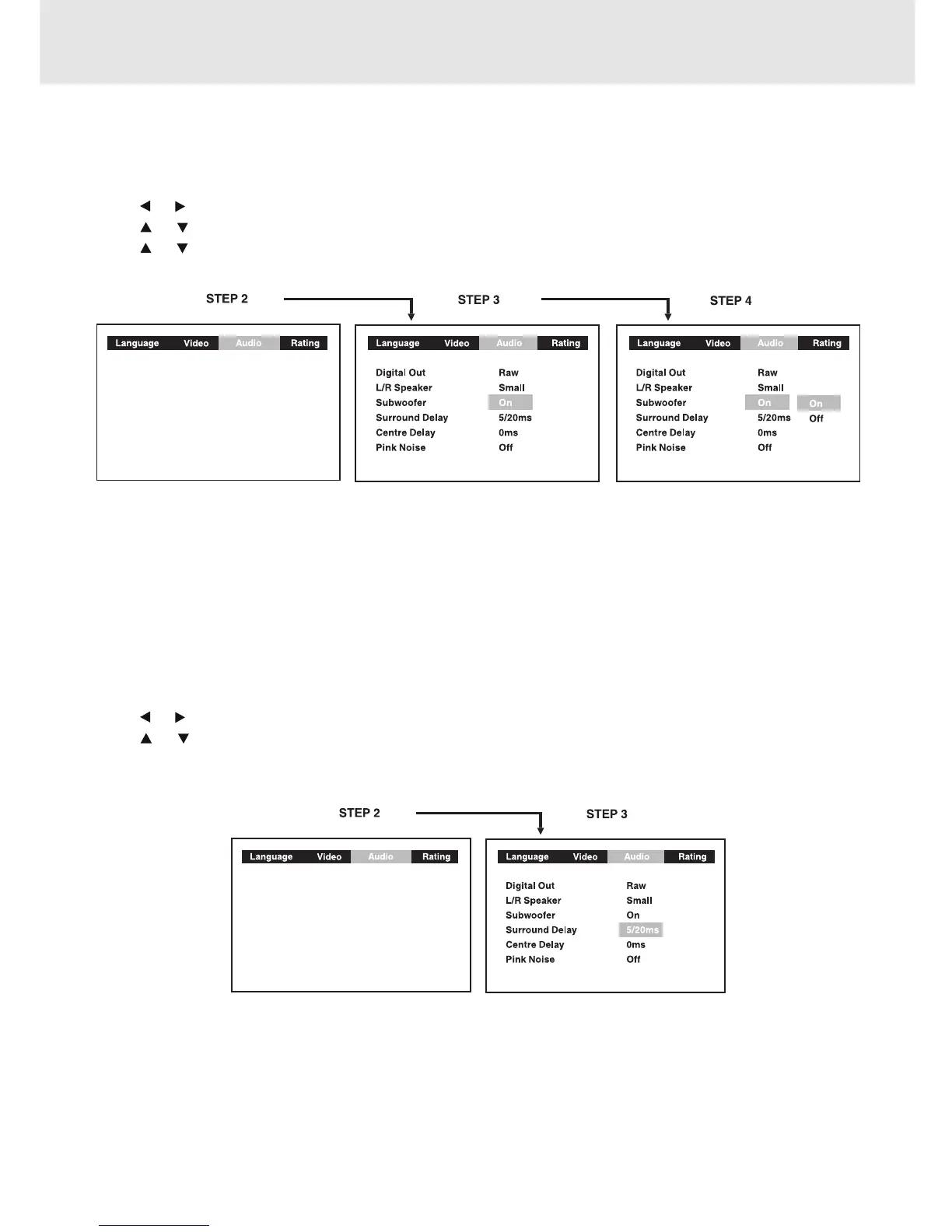 • The delay adjustment depends on the location of your surround speakers and the front speakers. If the location