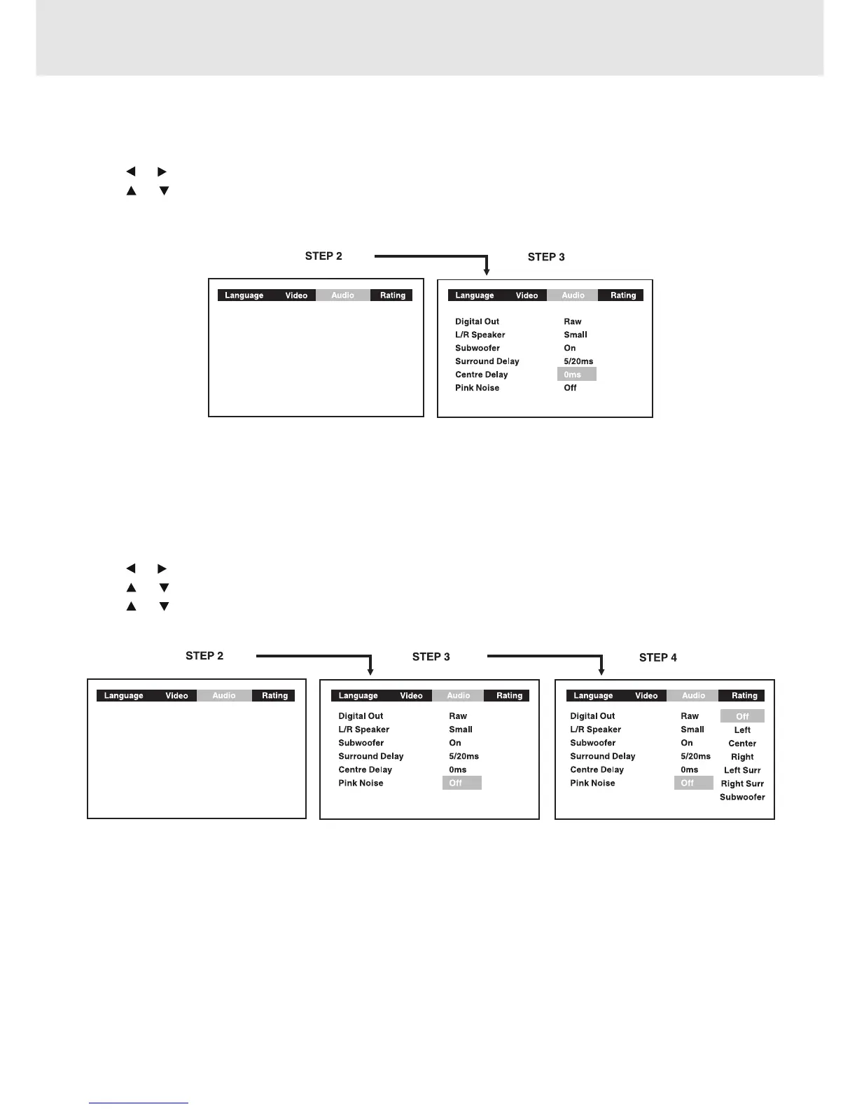 • This delay adjustment depends on the location of your center speaker. If the distance between the center speaker
