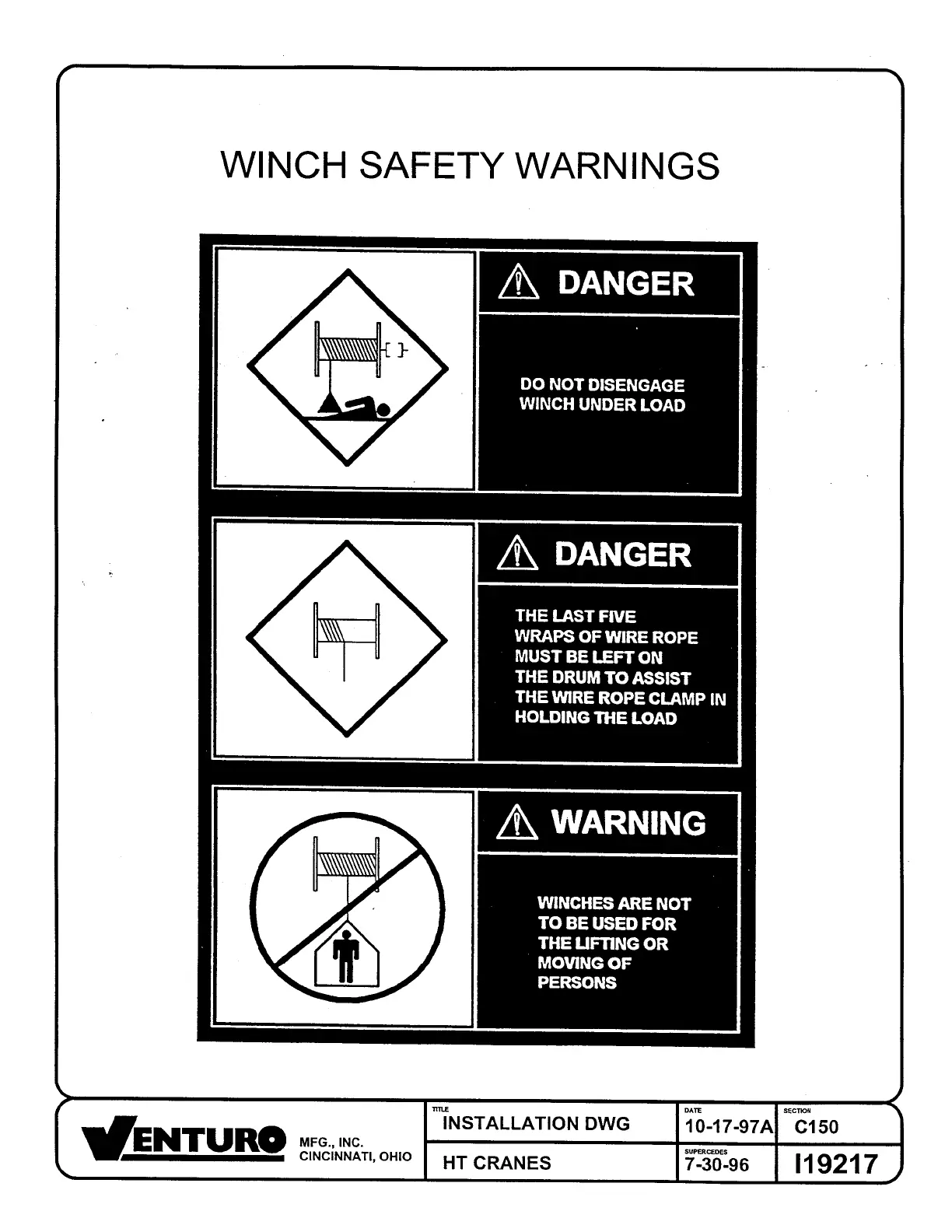 Venturo HT40KX - WINCH SAFETY WARNINGS