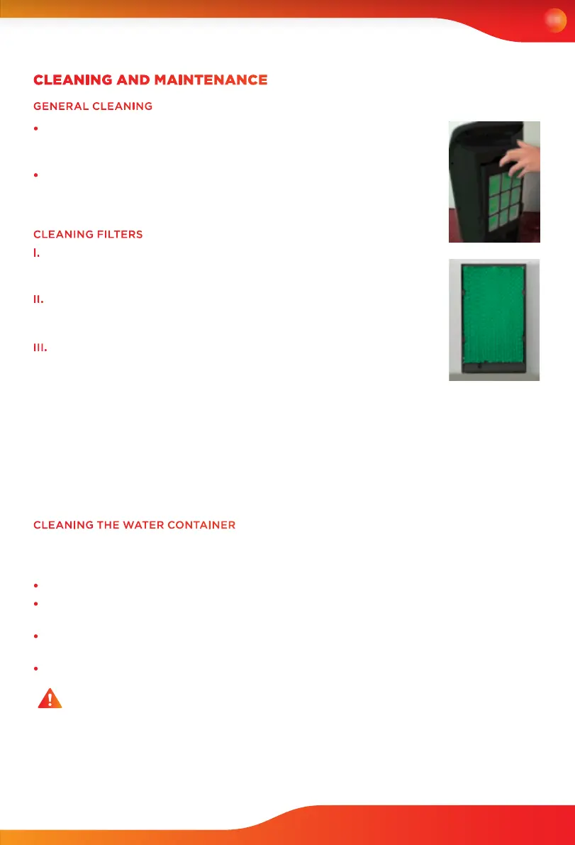 III. Do not use brushes with thick bristles to wash the lter and the