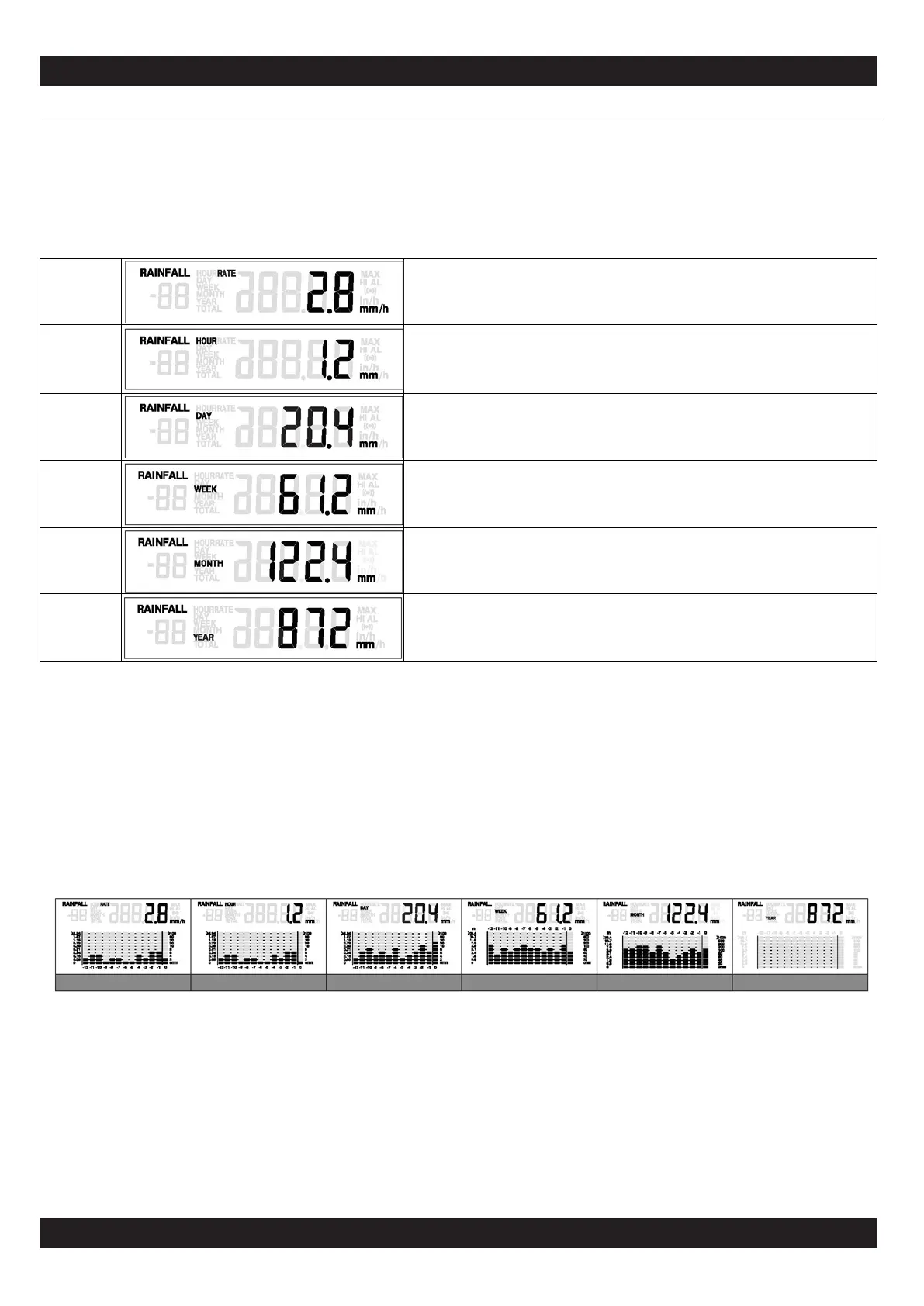 gewählte Regenmengen-Anzeige an. RATE
