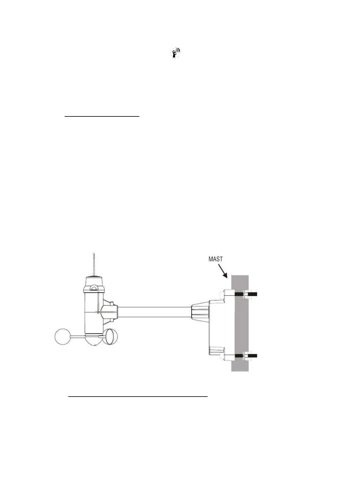 Note: To mount the anemometer, you need a mast (not supplied) about 1 – 1.25 inches (2.54 – 3.1 cm)