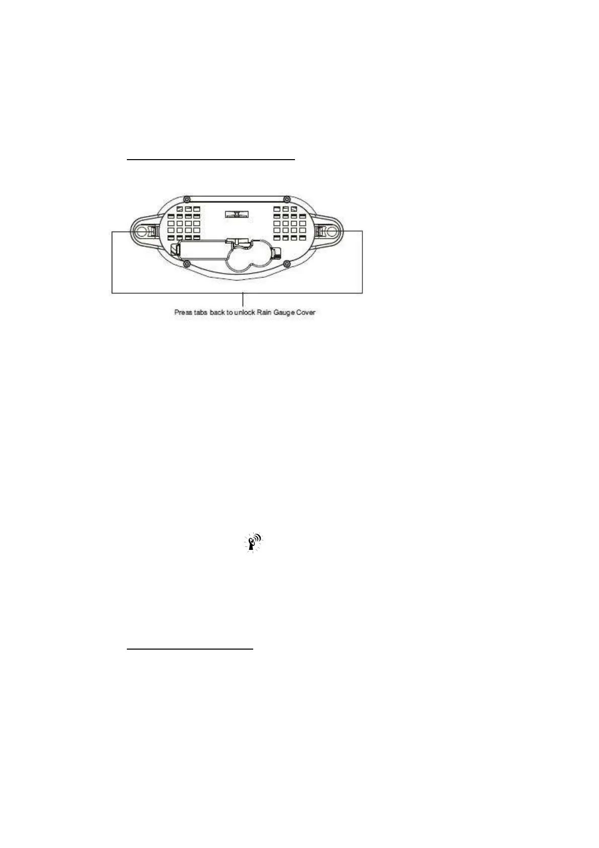 1. Tryck på knapparna på baksidan som visas på teckningen så att regnmätarens hölje lossnar.