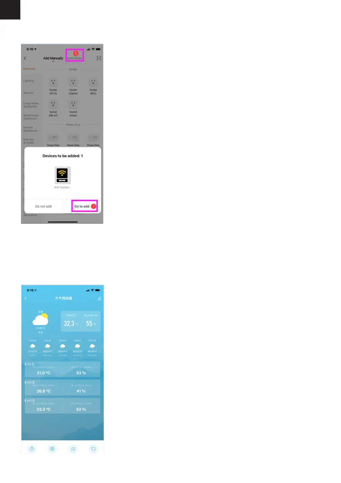 1 to automatically discover the device or add a device when 2 appears.