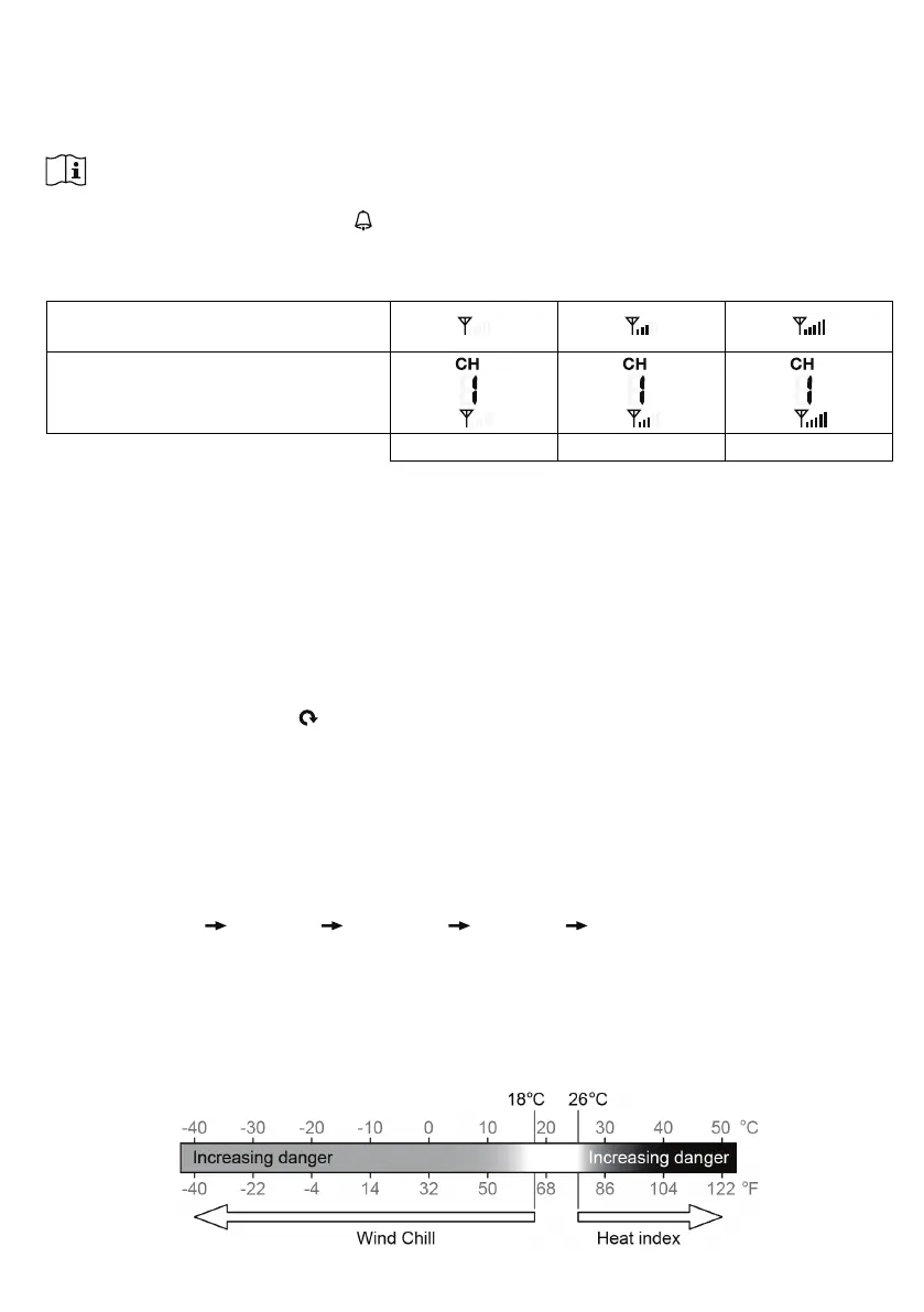 1. The console display signal strength for the wireless sensor(s), as per table below: