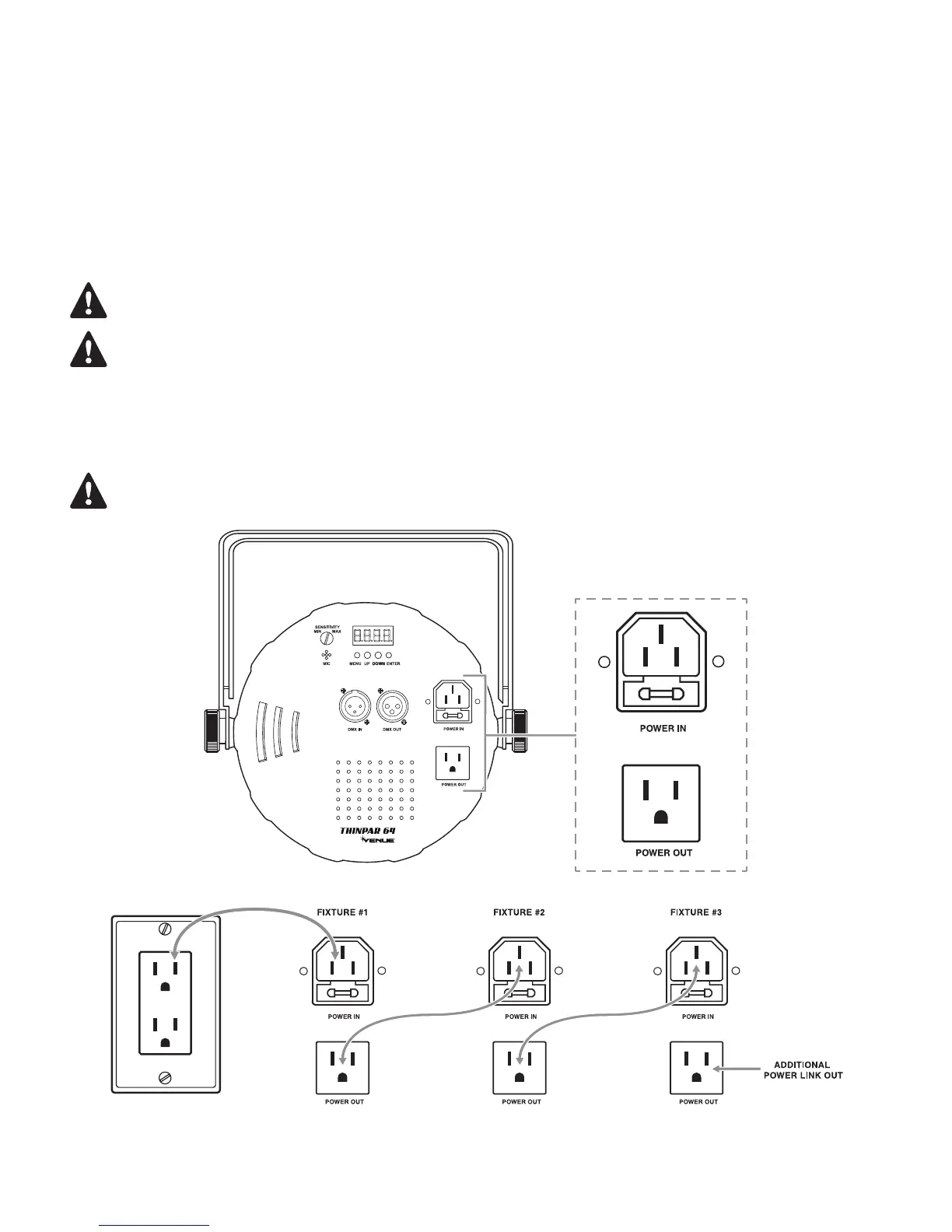This fixture contains power linking via the outlet located on the back panel. Please see the diagram below for