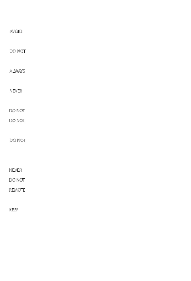 • DO NOT block, cover or obstruct air ow to or from the Fan while in operation.