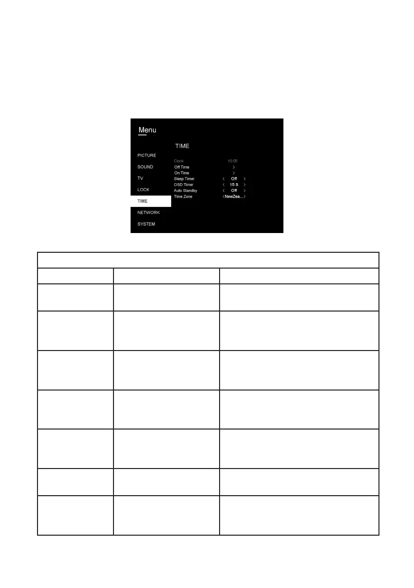 • To access the Time menu, press the MENU button, select Time and then press