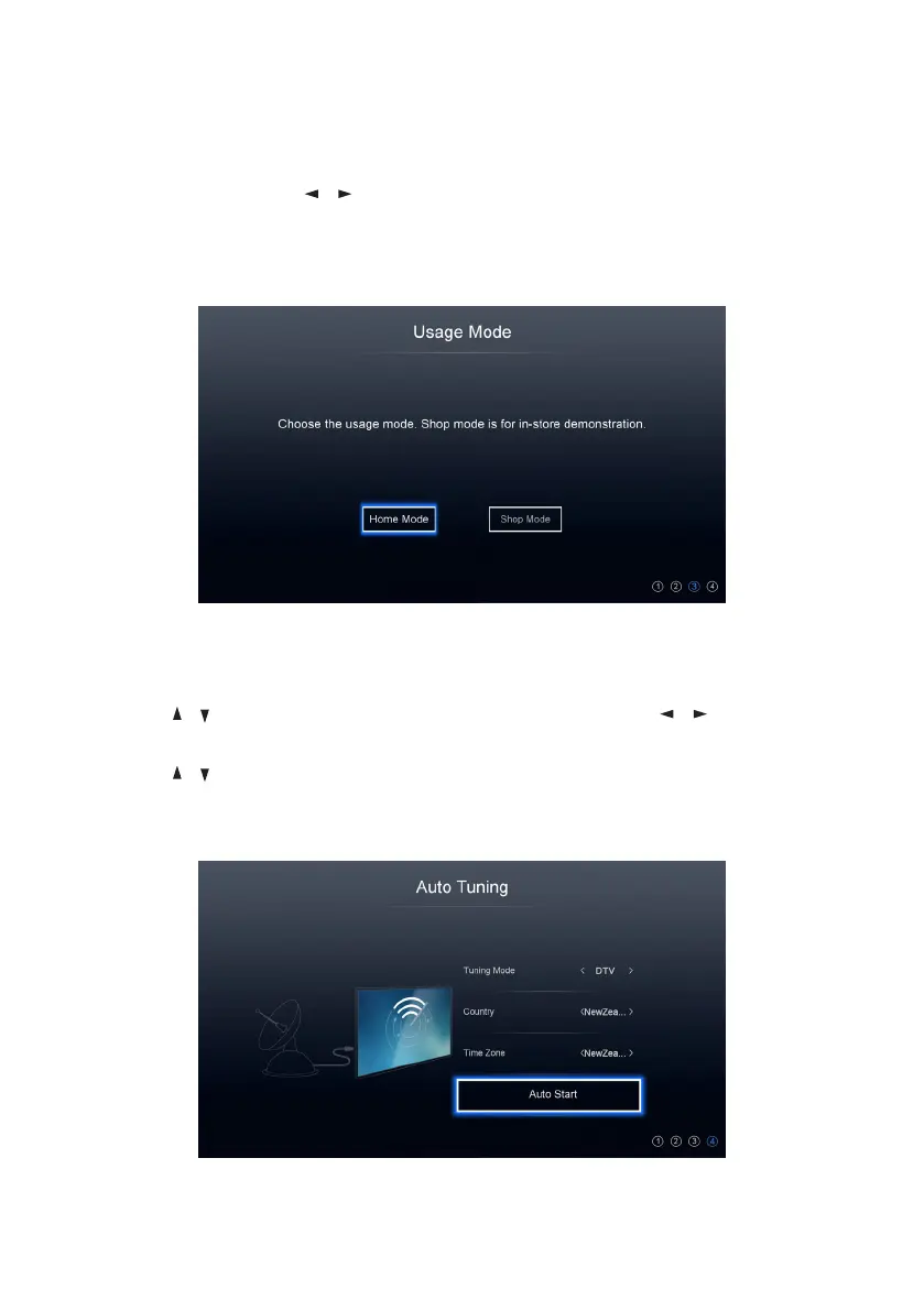Usage Mode: Use the / buttons to select the usage mode of your new TV