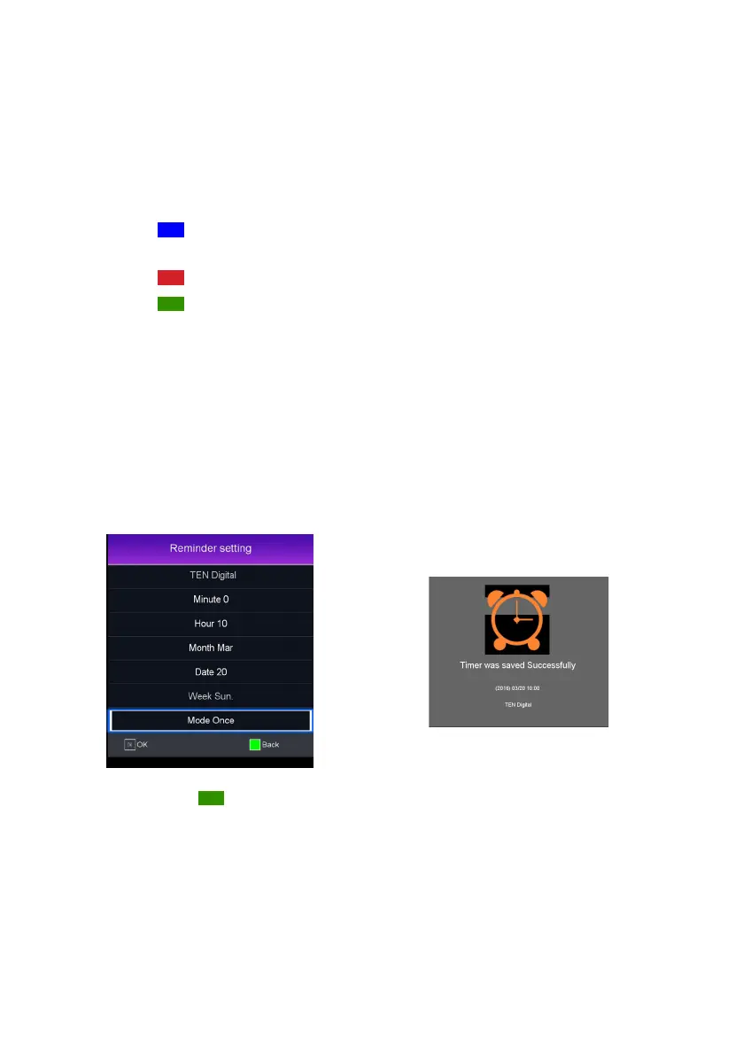 • Press the up / down to select Minute / Hour / Month / Date / Mode