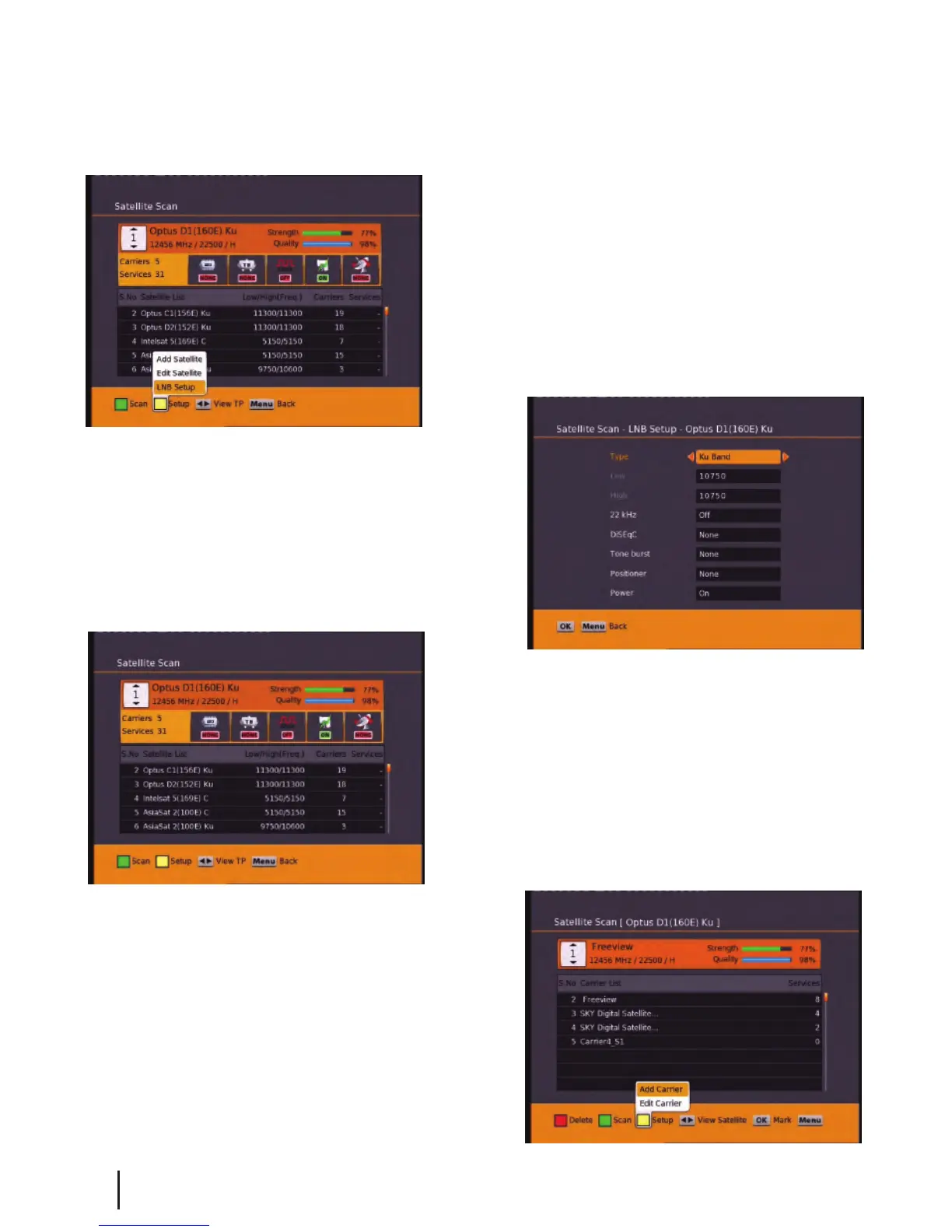 Main Menu - Installation - Tuning wizard - Satellite Scan