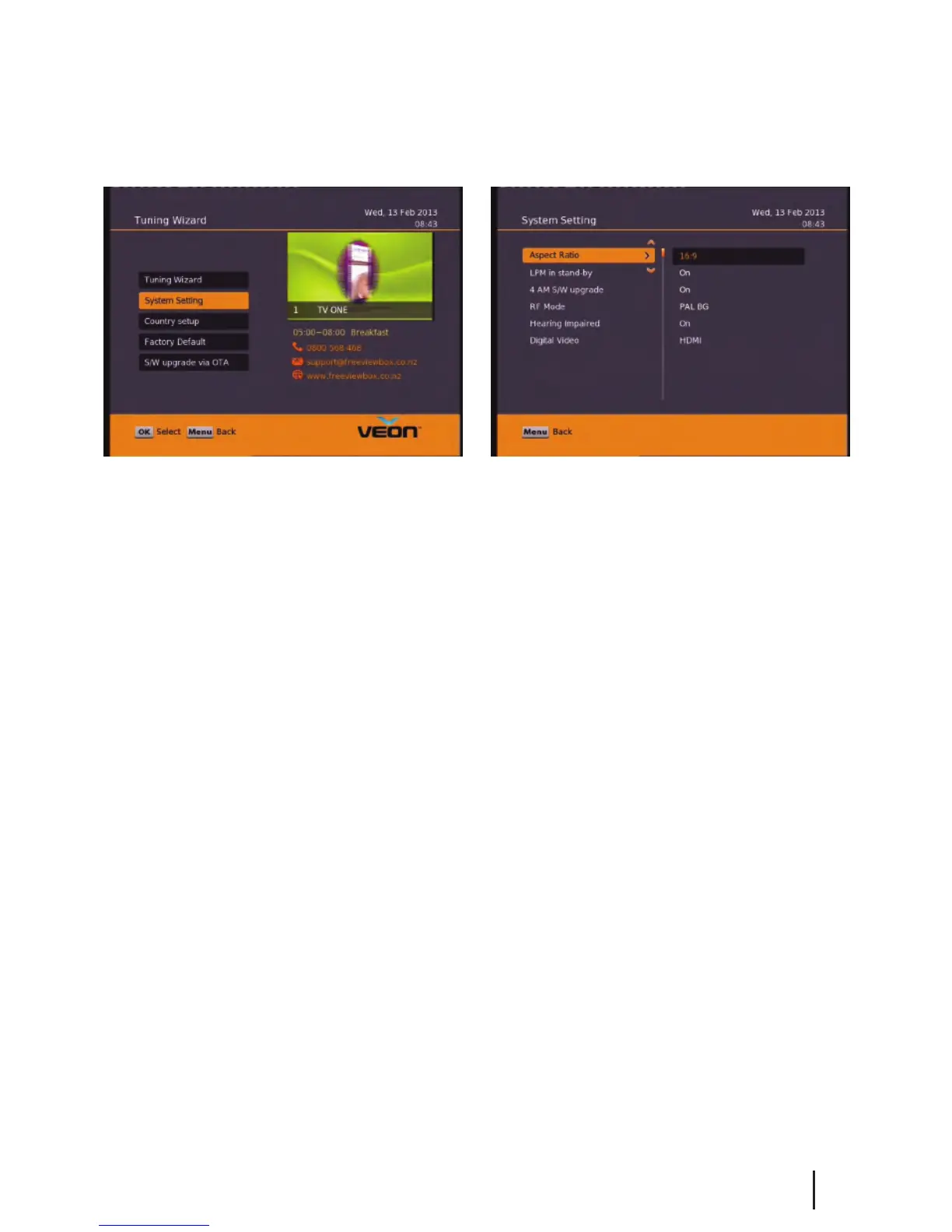 Note: To adjust a setting use the right arrow on your remote. To select a setting use the OK button.