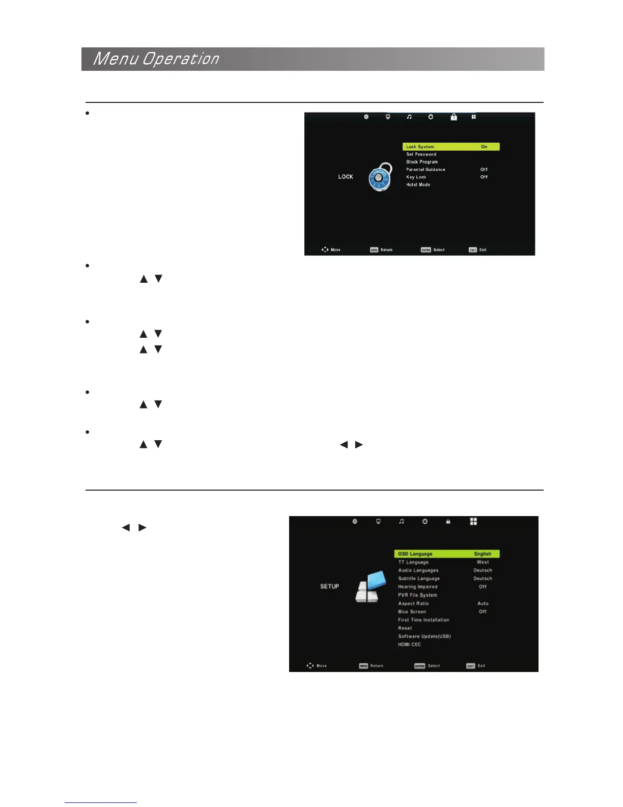 Press the / button to select Parental Guidance, then press the OK button to enter sub-menu