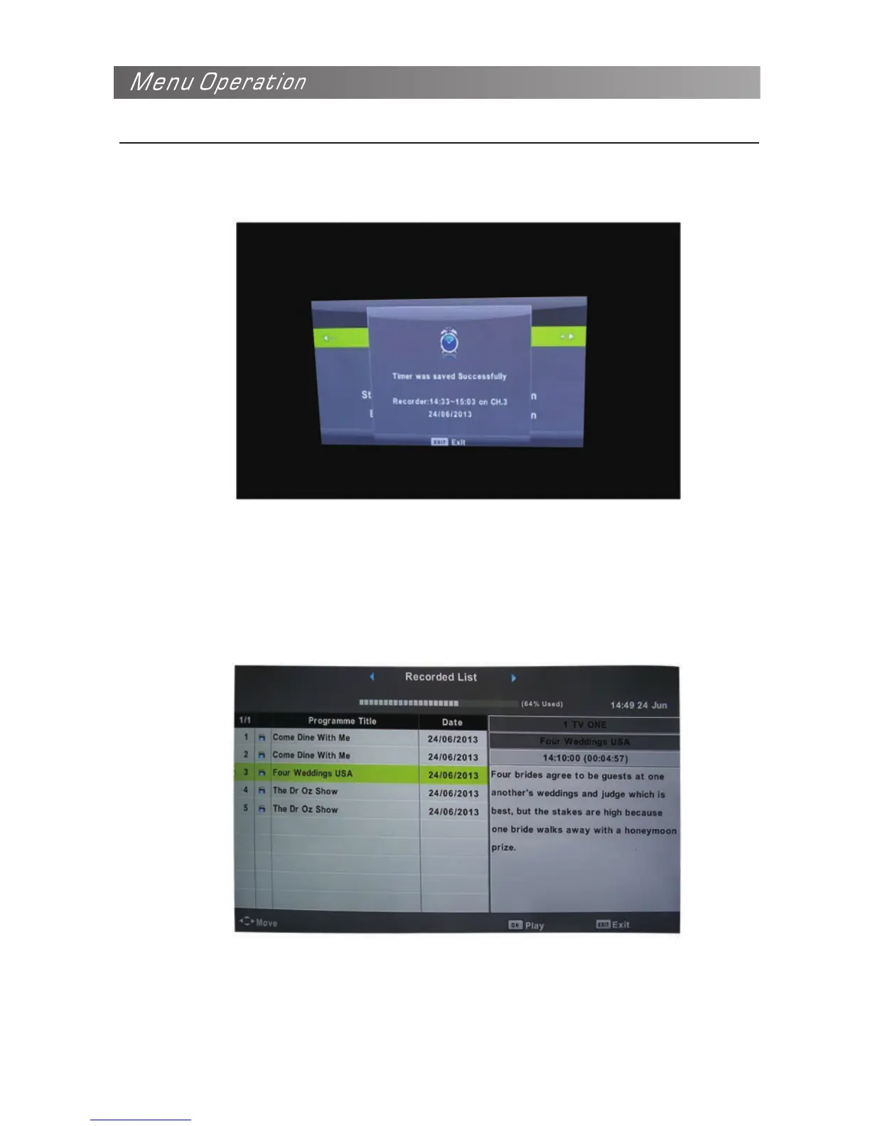the recorded list. Here you can have clear view the programs you set for timer record.