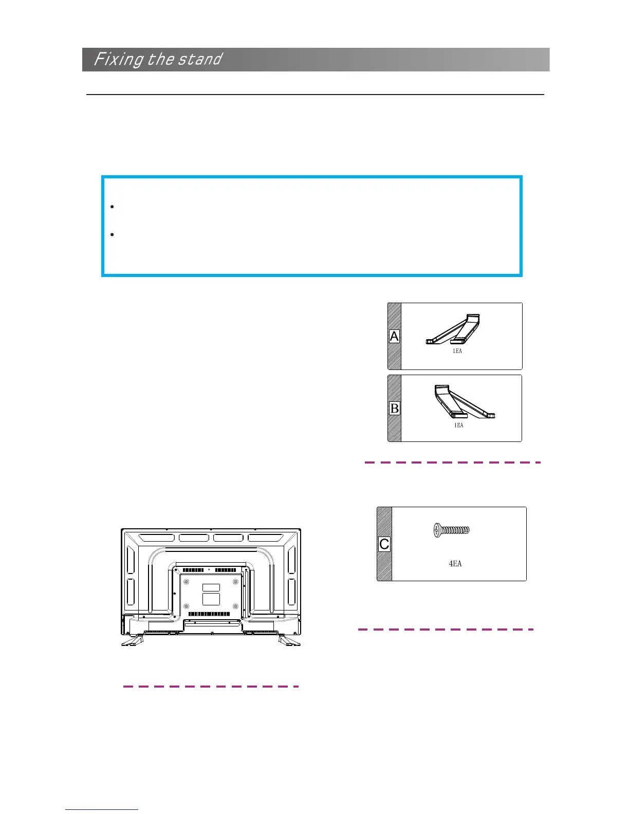 Your TV is packaged with the stand and the cabinet separated. Before using the TV, install the