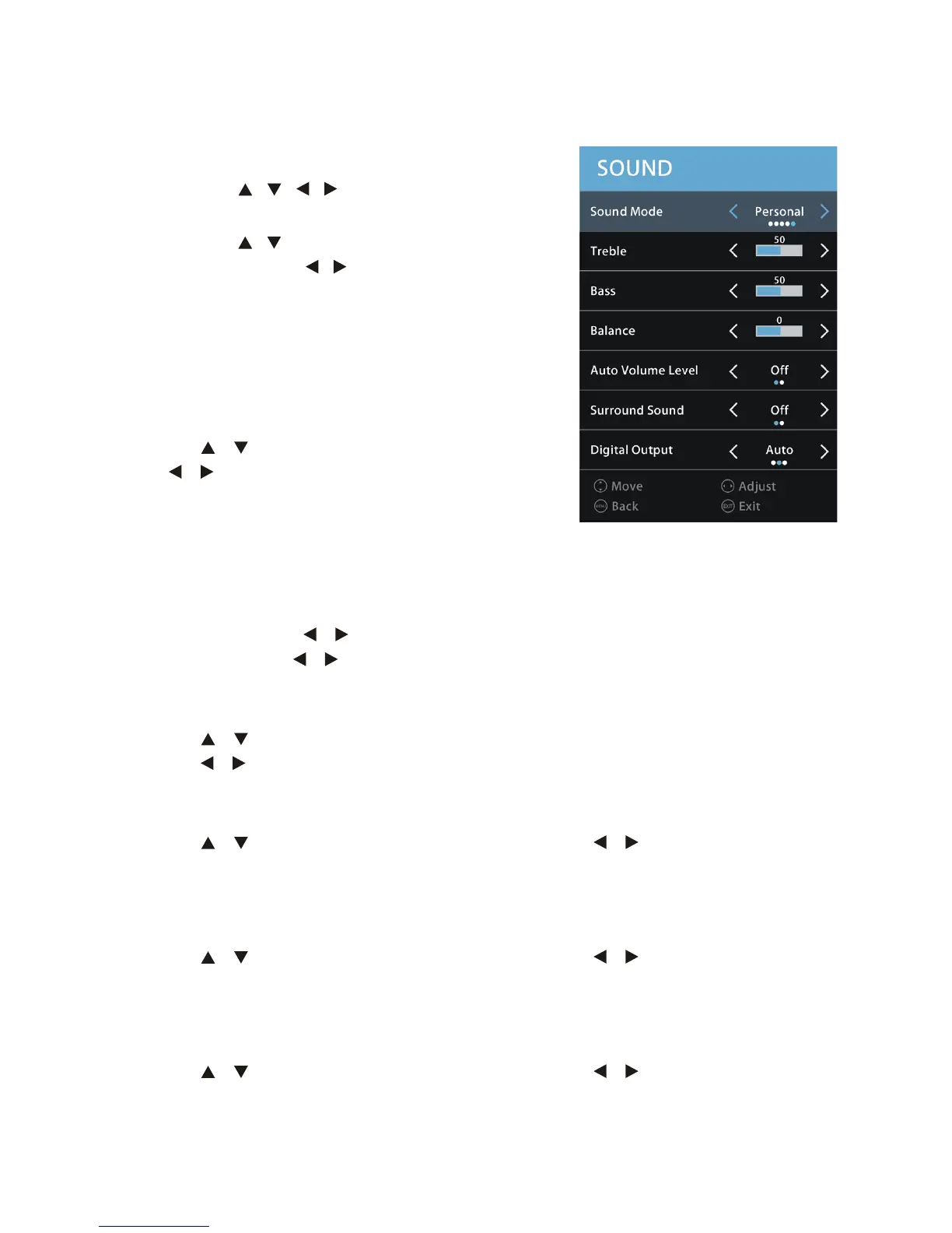 • The values for Treble and Bass can only be adjusted in Personal sound mode.