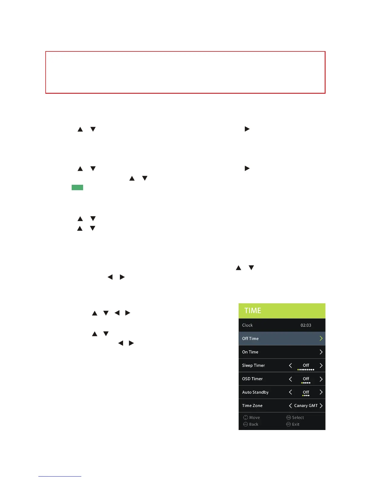 The Key Lock is used to lock/unlock TV buttons. Press the / buttons to select this